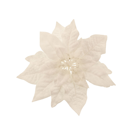 Frosted Poinsettia On Clip White 26cm
