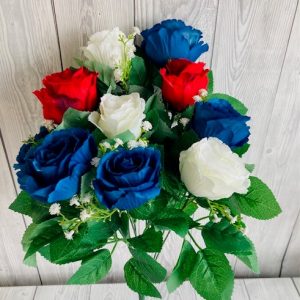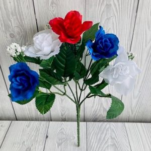 Rose Bud Bunch Red-White & Blue 10 Heads