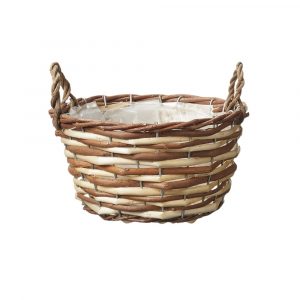 Baskets made of a different woven materials in a variety of shades and colours with or without handles, round, square, oblong and oval to use for floral design gifts, bridesmaids baskets, planted arrangements, hampers and shop display containers.