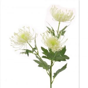 Artificial Protea spray flower stem with a cream flower and life like leaves on a long green stem