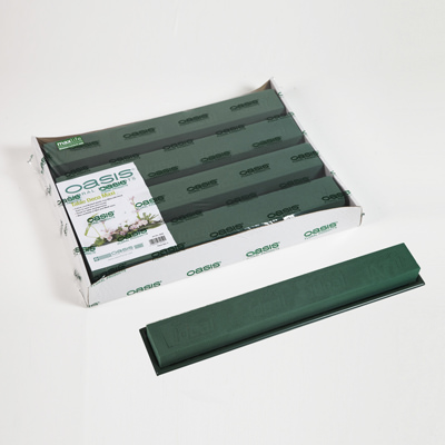 A pre cut rectangular piece of OASIS® Brand Floral Foam inserted into a plastic tray base