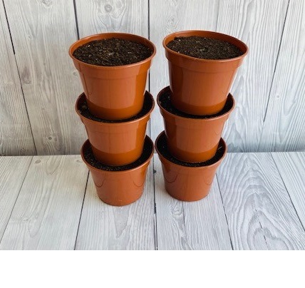 Brown Plastic pots filled with Styrofoam ideal for artificial flower arrangements