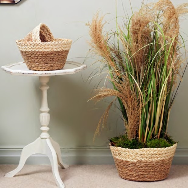 These versatile two tone coloured straw bowls are lined for creating floral designs, fruit baskets and gift baskets