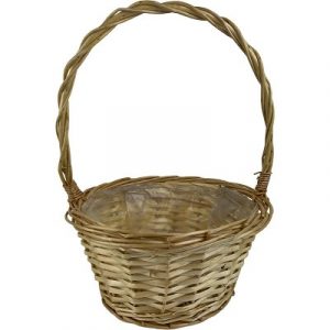 willow lined basket with tall over handle for planted gifts and floral arrangements
