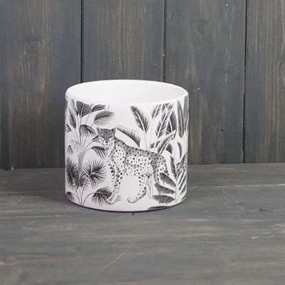 A delightful Cheetah design round cylinder ceramic pot, perfect for indoor pot plants.