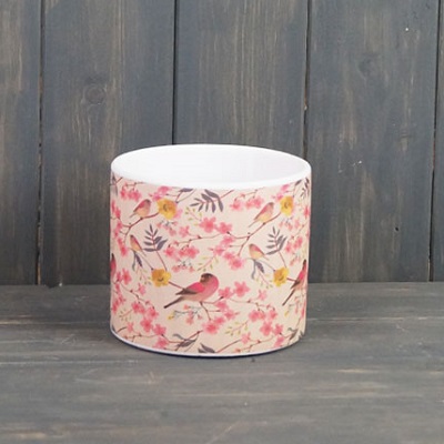 A delightful Cherry Blossom design round cylinder ceramic pot, perfect for indoor pot plants.