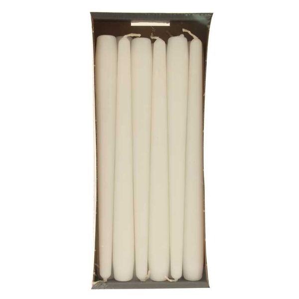 A narrow cylindrical candle that narrows slightly from a wider base to the tip