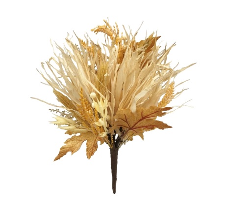 A delicate bouquet of dried natural raffia and artificial foliage and berries