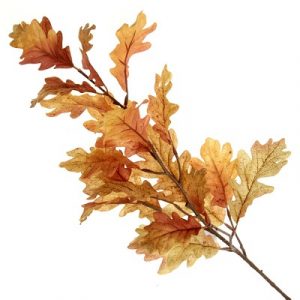 Artificial oak leaf spray in the orange and brown tones of Autumn