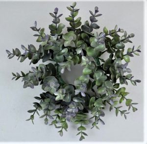 This eucalyptus candle ring makes an elegant addition to a table top.