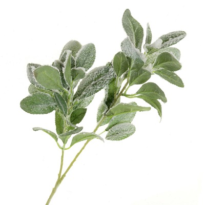 Artificial lambs ear spray with soft velvety leaves and a light dusting of snow