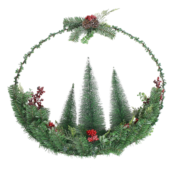 Wreath Ring With Snowy Trees and Berries 70cm 40% Off