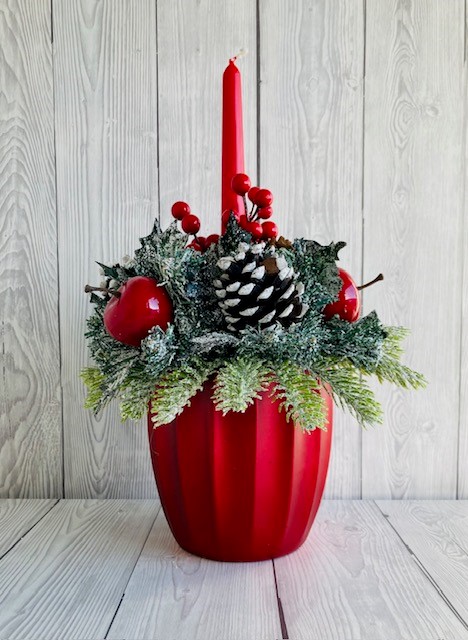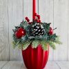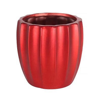 Metallic Red Grooved Ceramic Pot