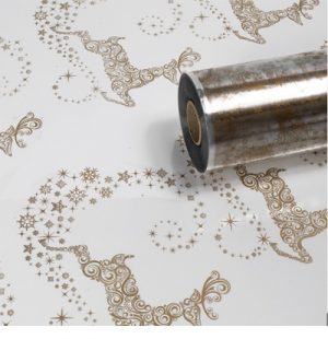 A seasonal waterproof, protective wrapping for finishing flower arrangements, hampers and Christmas gifts