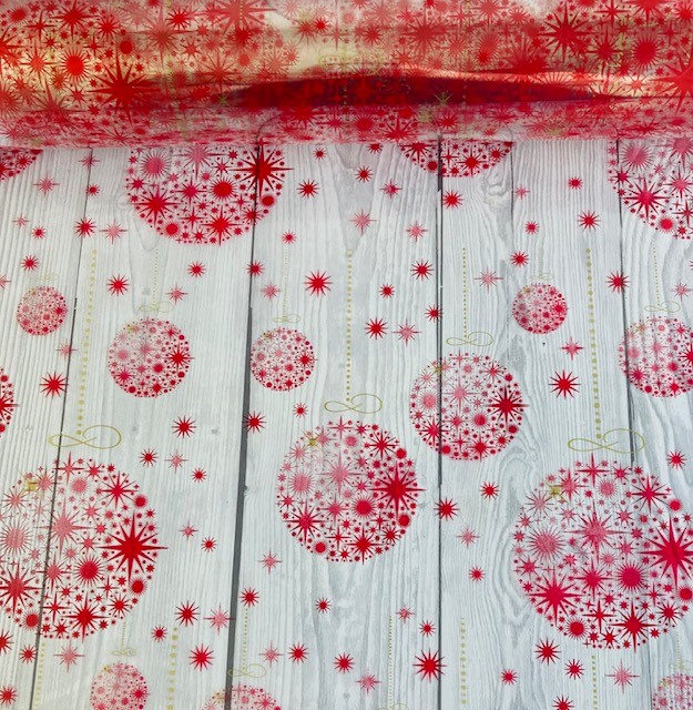 A seasonal waterproof, protective wrapping for finishing flower arrangements, hampers and Christmas gifts