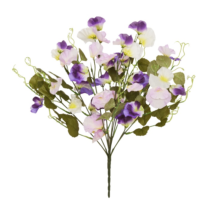 A delicate summer bush full of pink and purple Sweet Pea flowers.