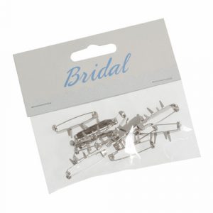 Metal safety pin style corsage pin Metal clasps fold to hold your design securely in place